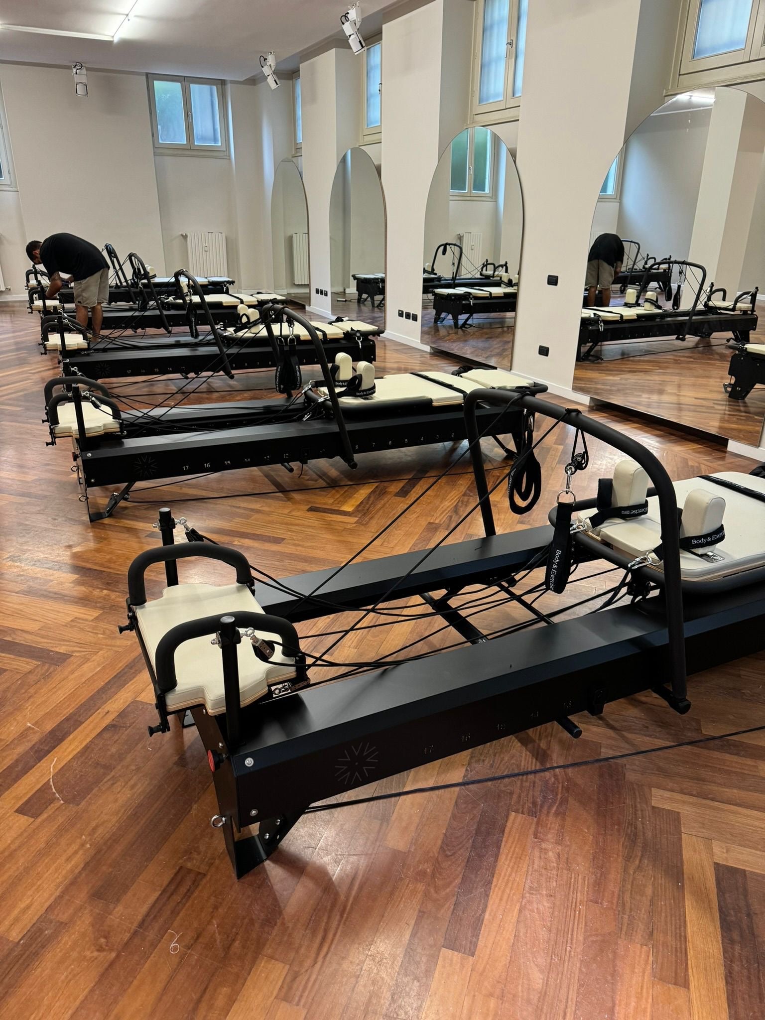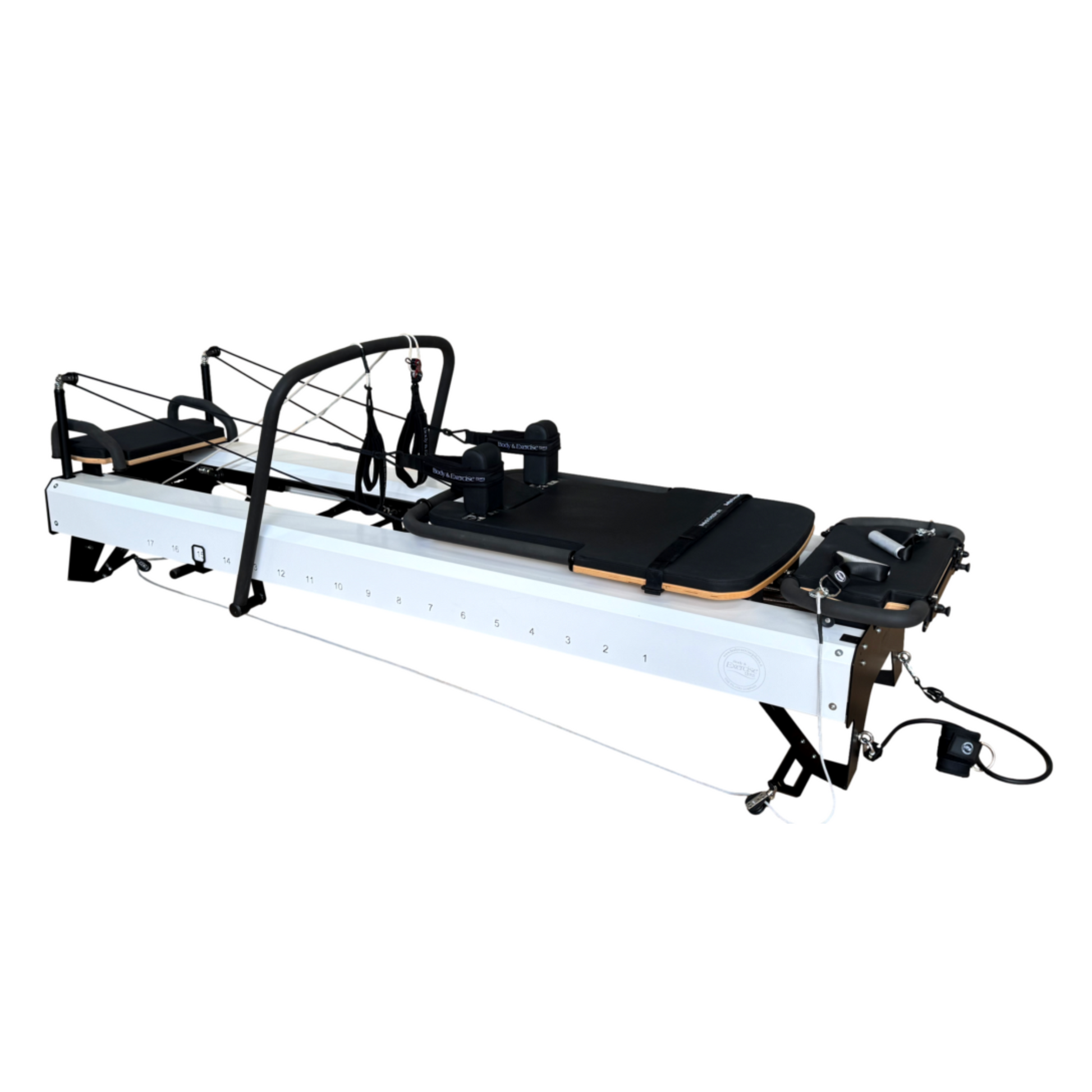 Die Body & Exercise Pilates-Geräte können vollständig an das Erscheinungsbild Ihres Studios angepasst werden. Wählen Sie aus einer breiten Palette von Standardfarben oder geben Sie einen spezifischen Farbcode an, um eine perfekte Anpassung an Ihre Inneneinrichtung zu gewährleisten. Darüber hinaus ist es möglich, Ihr eigenes Logo oder Ihren Firmennamen auf dem Schlitten und/oder dem Rahmen anzubringen, was für ein professionelles und einzigartiges Aussehen sorgt.