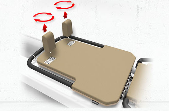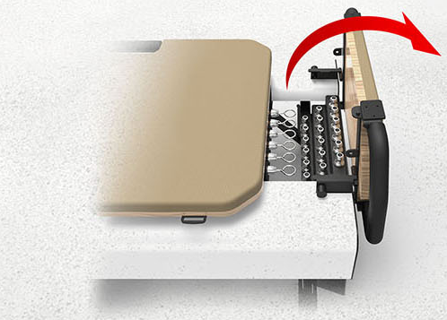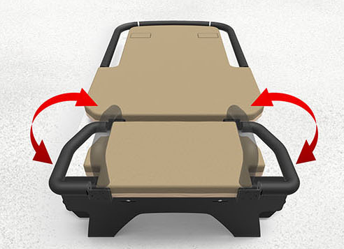 Klappbare Frontplattform mit ergonomisch geformten Griffen, die sich leicht um 180°, 45° und 90° verstellen lassen, sodass Sie Ihre Trainingsmöglichkeiten flexibel anpassen können