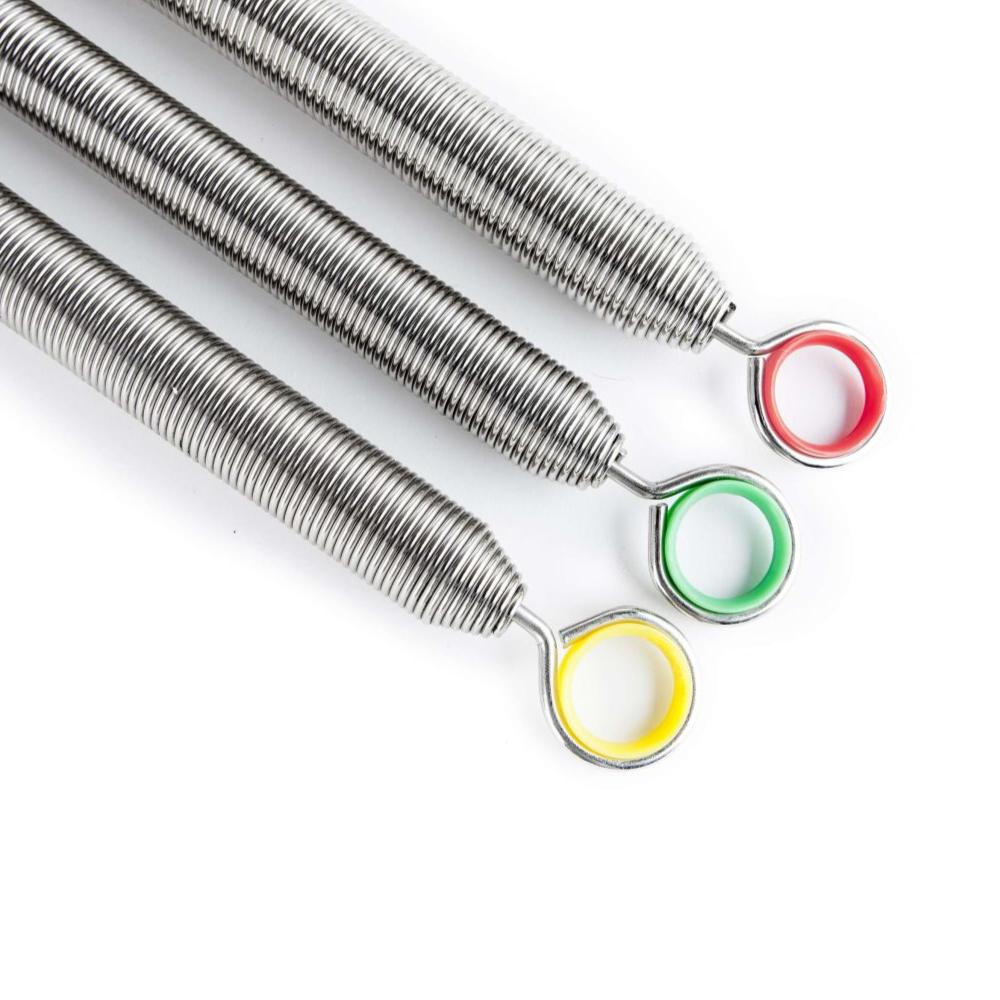 Speziell gefertigte Federn für Reformer von Elina Pilates. Hergestellt aus innovativem antioxidativem und extrem widerstandsfähigem Stahl, der im Vergleich zu einer herkömmlichen Feder eine überlegene Belastbarkeit und Haltbarkeit aufweist. Sorgt für eine optimale Dauerspannungsqualität.